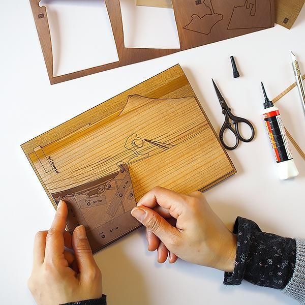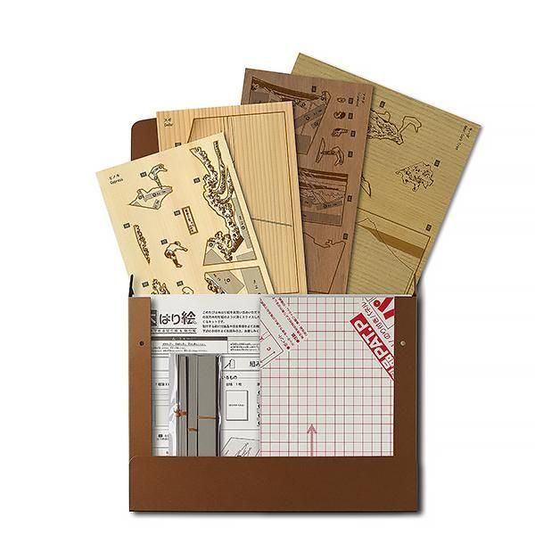 ペーパークラフト感覚で、カッターとボンドさえあれば気軽にできるハンドメイドの木工アート「木はり絵」のキットと、完成後すぐに飾れる額・マットをセットにしました。