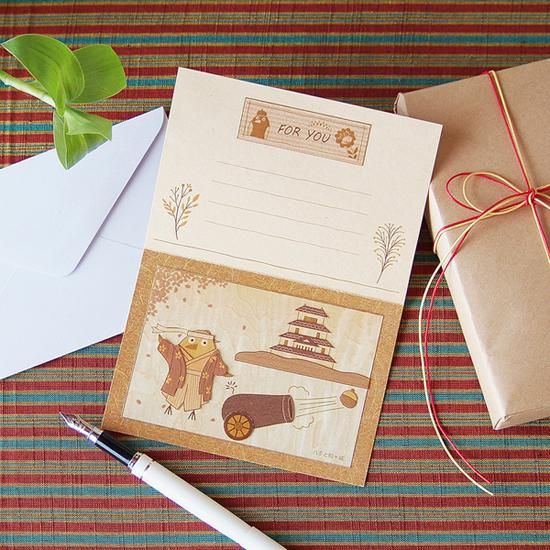 【送料無料】木はり絵グリーティングカード「鶴ヶ城と新島八重」